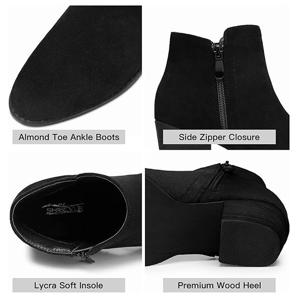 Color:BlackToe Style:Almond ToeBoot Form Type:BootieHeel Type:low-heelSeasons:FallStyle Name:Ankle Boots for Women