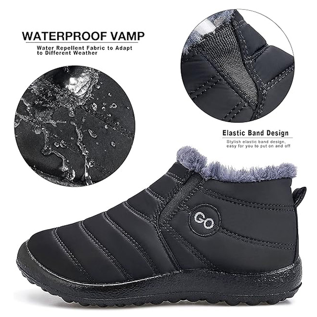 Shaft Circumference:10 InchesMade of waterproof oxford cloth to keep feet dry in rain or snowSoft faux fur lining and breathable plush wrap feet to keep warm in winter