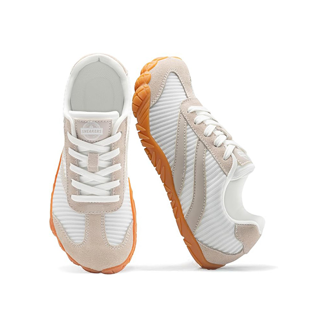 Women’s zero-drop sneakers with a wide toe box for barefoot-like comfortThe upper of barefoot shoes features suede leather patchwork design with fashionable elements.Casual yet stylish, minimalist design complements any outfit