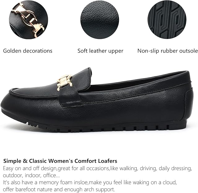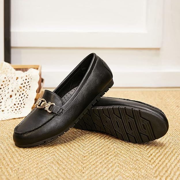 Crafted with high-quality synthetic leather, these women’s slip-on loafers ensure durability and a luxurious feel.The rubber sole provides excellent flexibility and traction, ensuring a secure and slip-free walking experience.